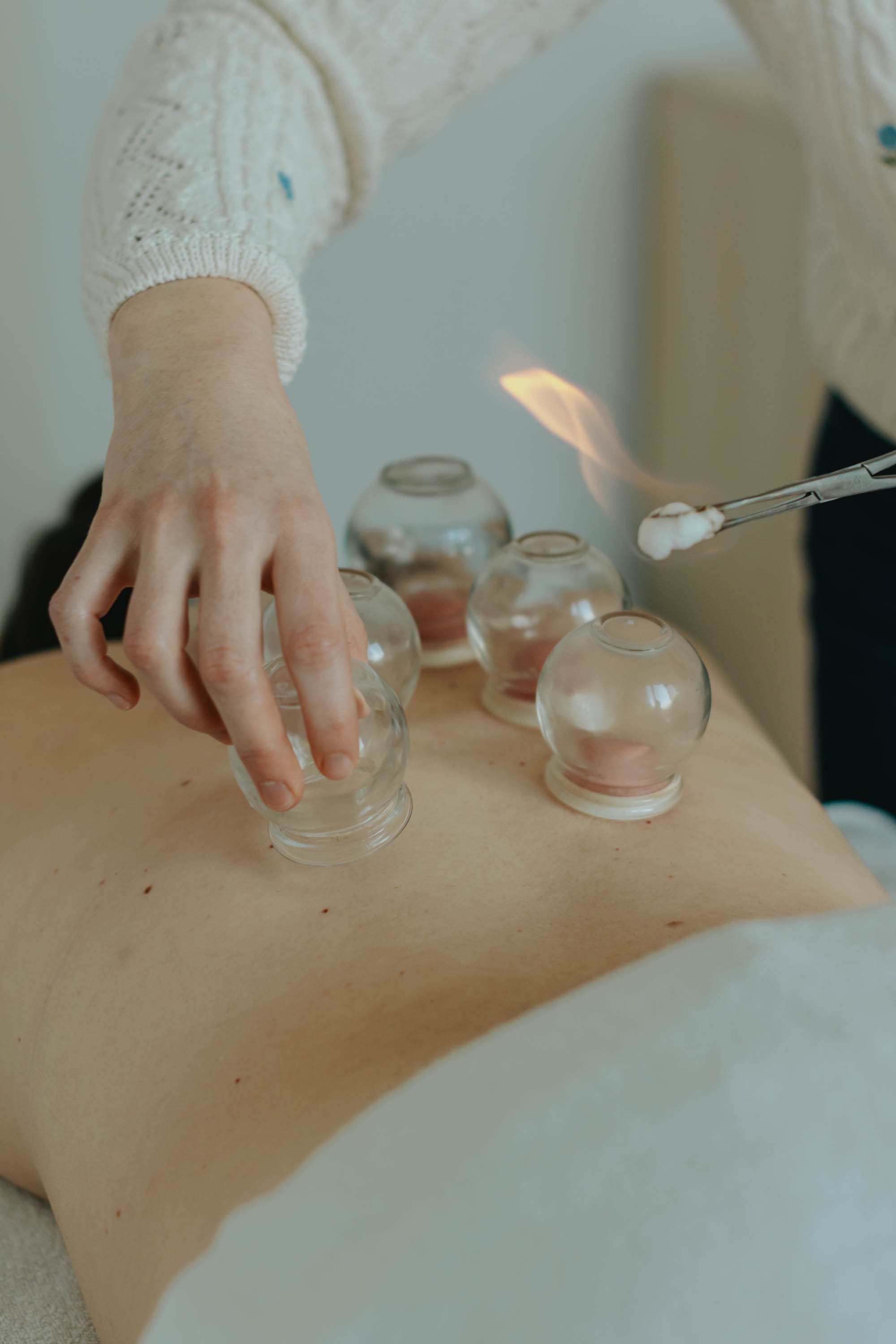 La pose de ventouses consiste à appliquer des ventouses sur des zones ciblées afin de stimuler la circulation et favoriser le relâchement des tensions.